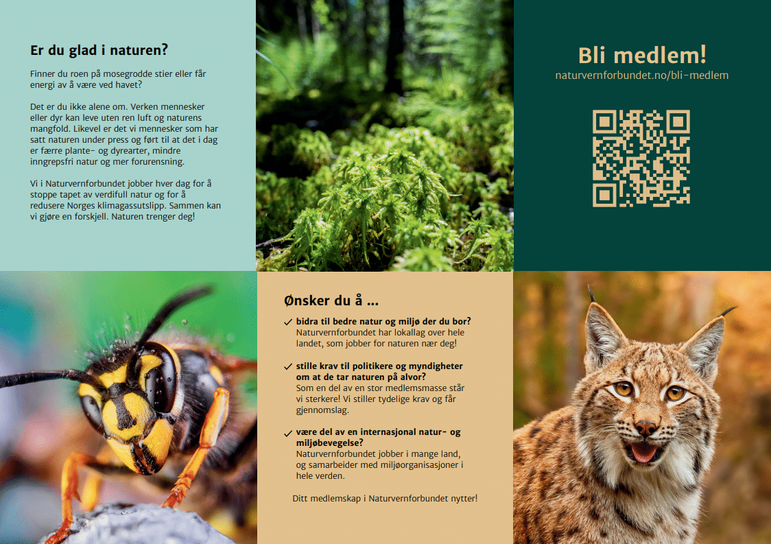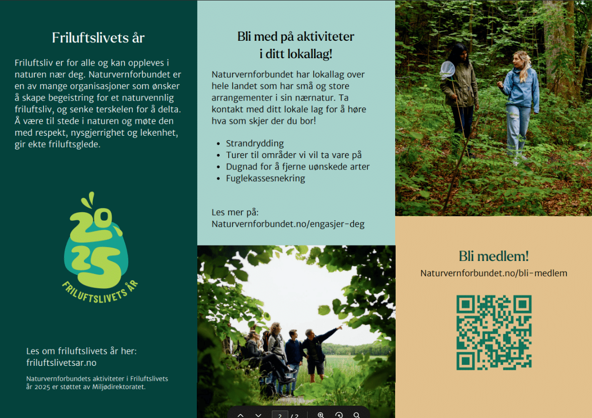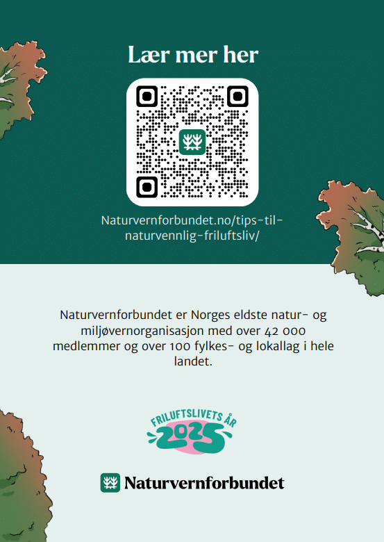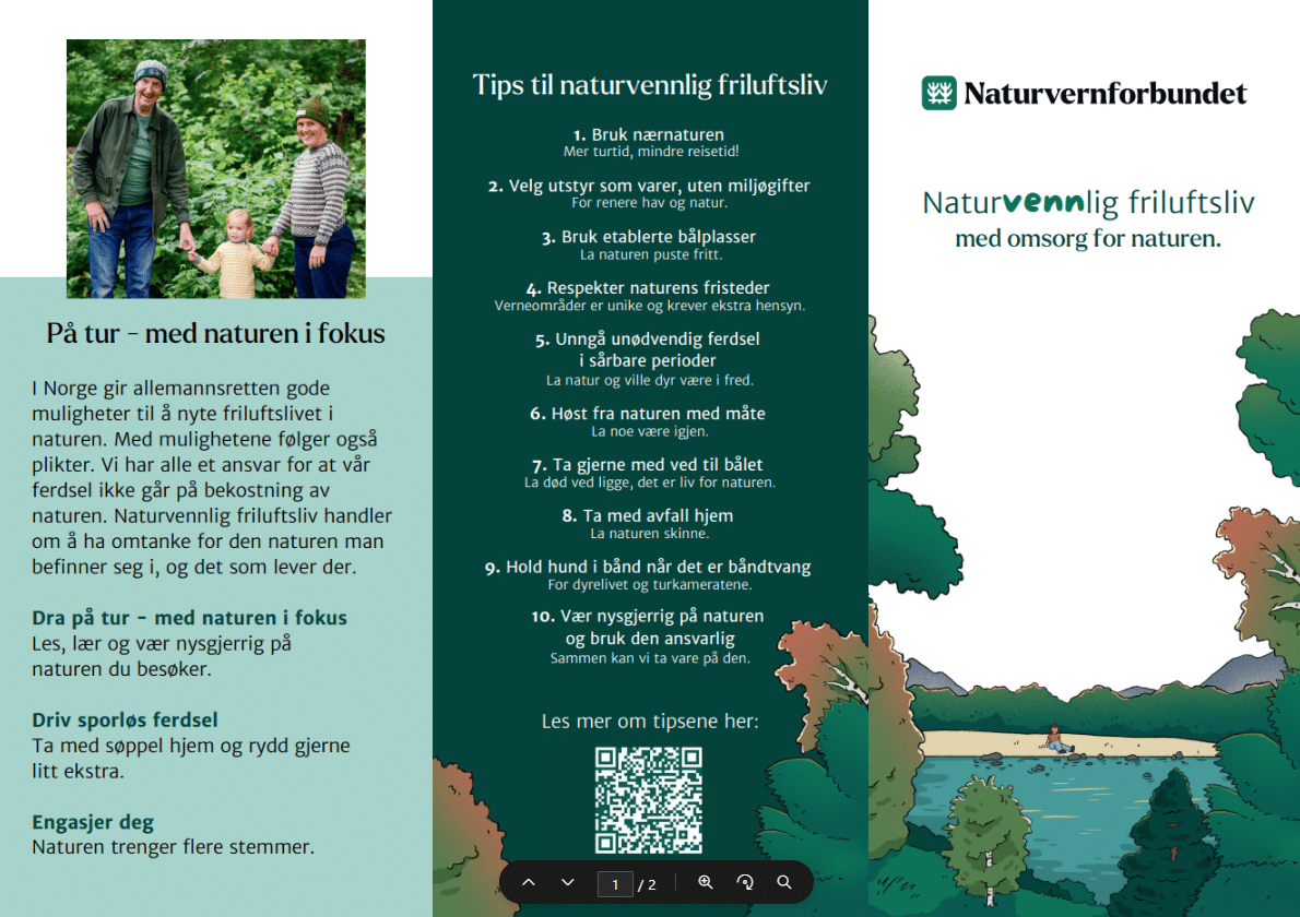 Folder om naturvennlig friluftsliv med qr-kode til innmelding