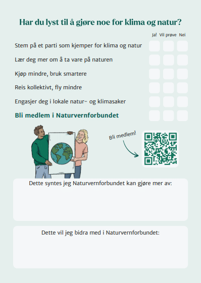 Bakside av flyer "Stå opp for klima og natur" med qr-kode for medlemskap