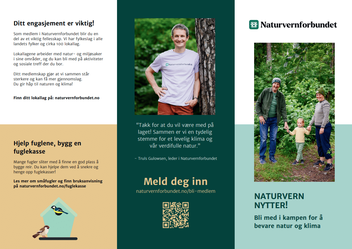 Folder "Naturvern nytter". Informasjon om Naturvernforbundet sitt arbeid, og medlemskap