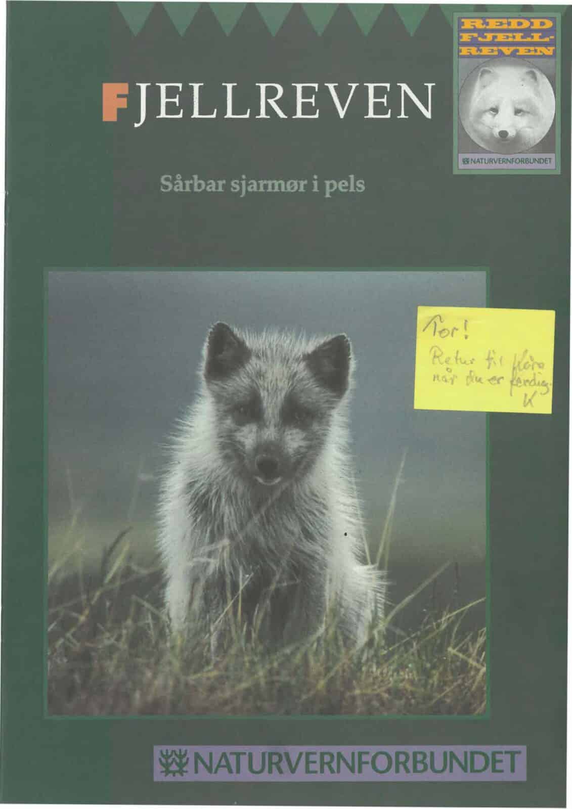 En dag jeg kommer på kontoret ligger det noe på pulten min. Det er en bunke med papirer inne i en plastmappe. Øverst er det noen løse sider som noen har kopiert opp og puttet inn i et brettet A3-ark. Jeg åpner det, og en grønn side kommer til syne. En fjellrev ser opp på meg med billesorte øyne, omkranset av begynnende vinterpels. Kopien er kornete med blasse farger og striper etter kopimaskinen. Det skulle vel aldri være … Jeg blar meg nedover i bunken, og der er det. Heftet, like fint og strøkent som i 1995: Fjellreven – Sårbar sjarmør i pels. Ytterst på plastmappen er det festet en liten gul lapp hvor det står en kort og enkel beskjed: «Tor! Retur til Kåre når du er ferdig. K»