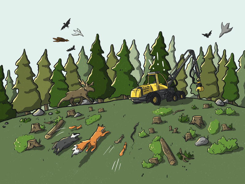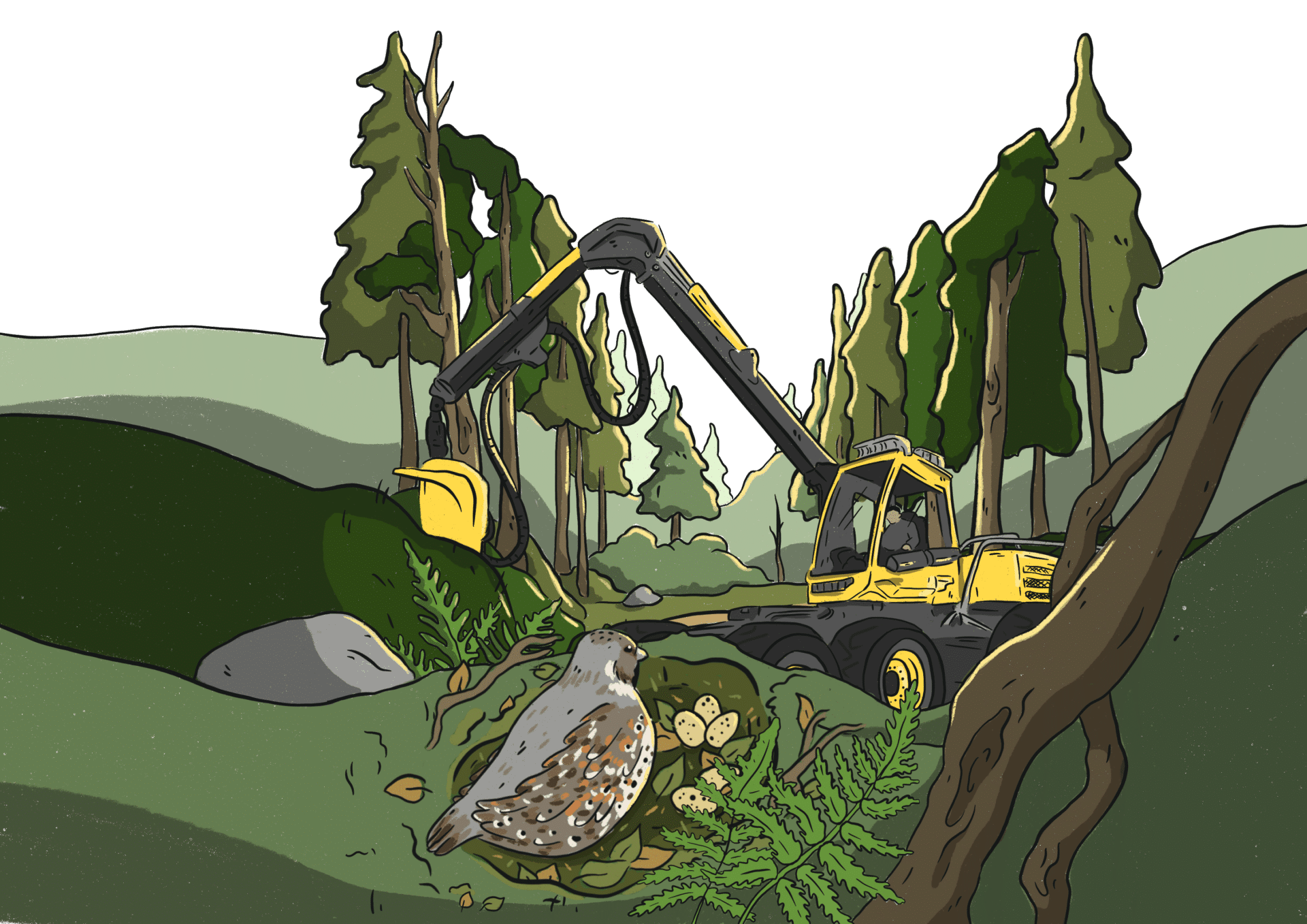 Hogstmaskiner er en stor trussel mot fugle- og dyrelivet, og fører til at titusenvis av fugle- og dyreunger blir drept hver vår.
