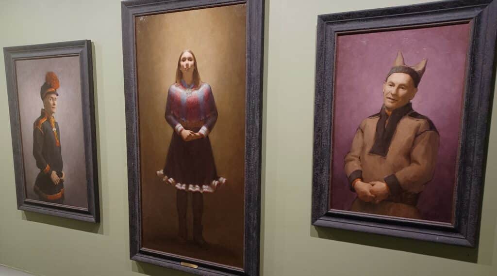 «Utstillingen Jienat sámis / Voices of Sápmi viser oljemalerier og skulpturer av sentrale samiske personer, og norske og samiske aktivister. Kunstner Anna-Brith Arntsen portretterer nåtidige engasjerte stemmer, og har malt kunstnerne Niko Valkeapää, Ánde somby, Hans Ragnar Mathisen og Joar Nango, aktivist og skuespiller Ella Marie Hætta Isaksen, politikerne Aili Keskitalo og Silje Karine Muotka, sjaman Eirik Myrhaug med flere.