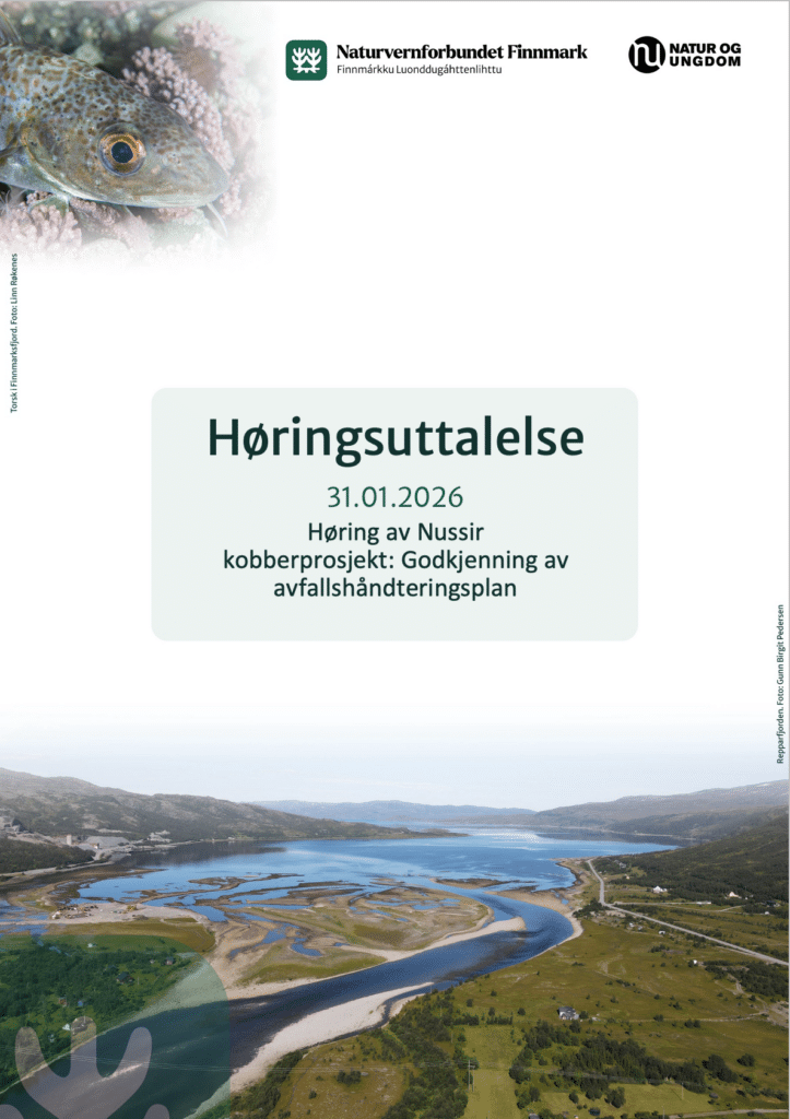 31.01.2026 leverte Natur og Ungdom, Naturvernforbundet i Finnmark og Naturvernforbundet i Stilla og Vest-Finnmark høringsuttalelse til avfallshåndteringsplanen for gruvedrift i Nussir-fjellet i Repparfjorden til Miljødirektoratet.
