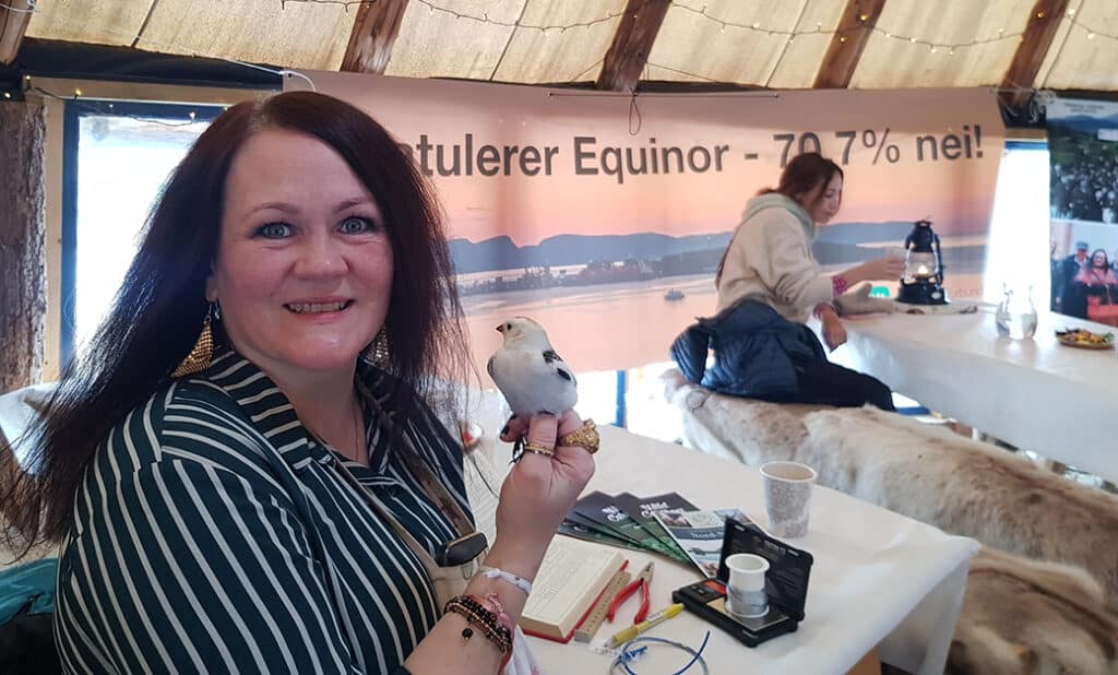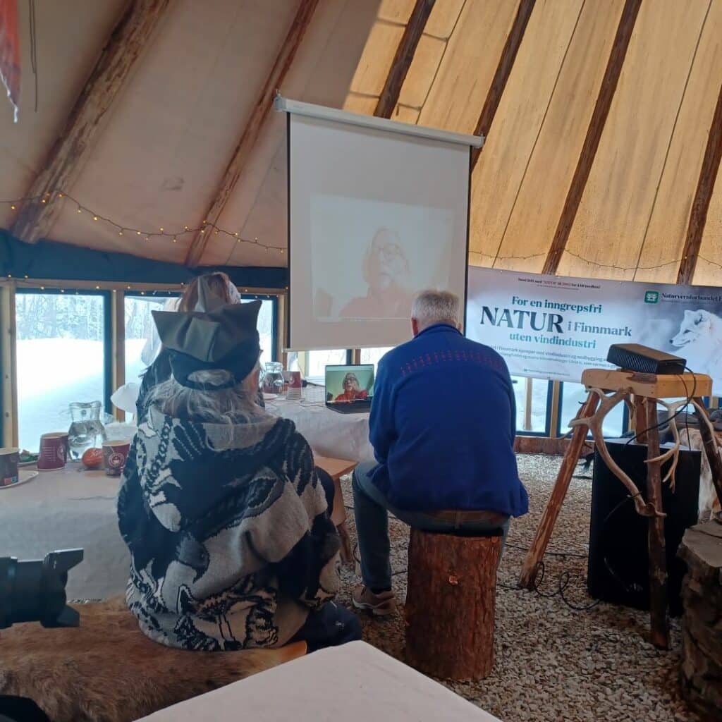 Foredraget ble overraskende «åpnet» med en joik fra området, framført av Piera Jovnna Somby som har rein i området på Porsangerhalvøya som nå er truet av vindindustri, og som er leder av lokallaget Ávjovárri.