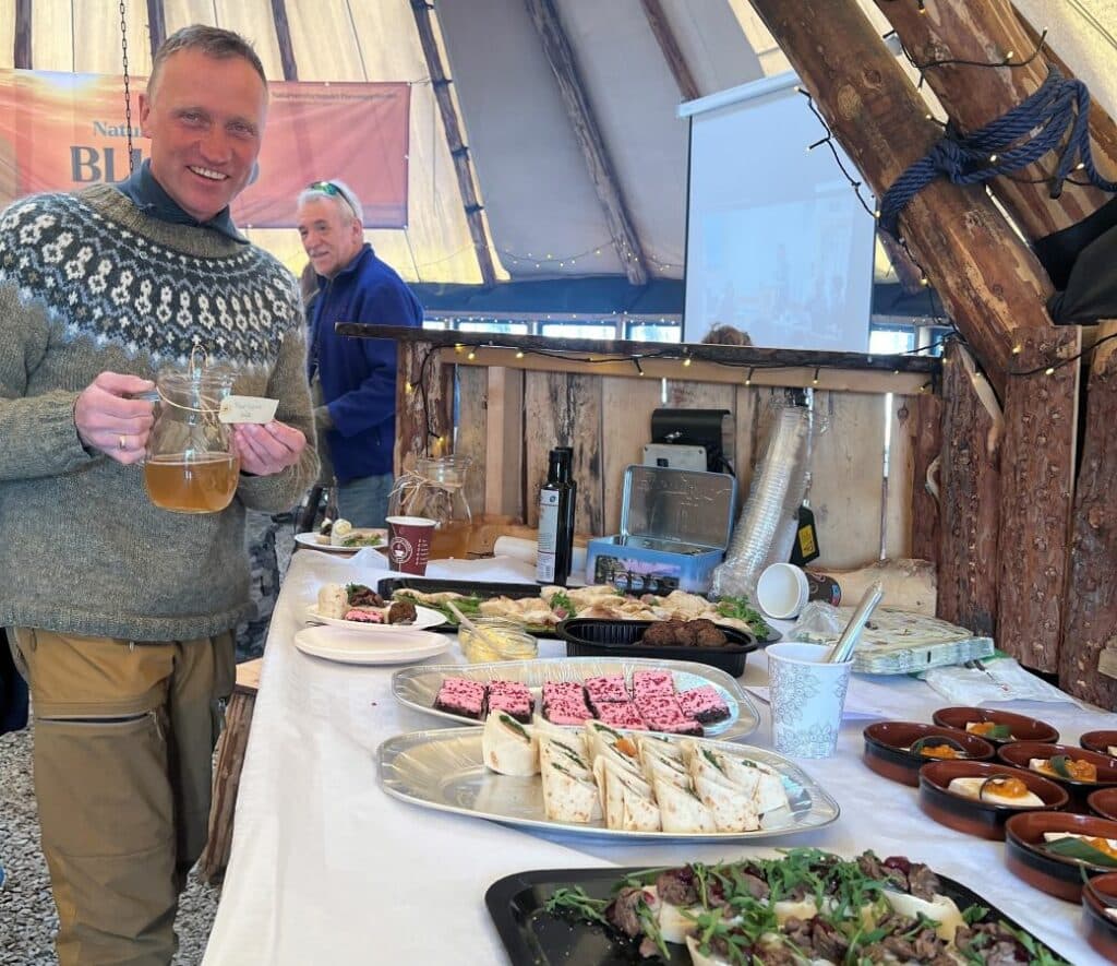 Vertskapet, v/ Kai-Simon Johansen i Wild Caribou fortalte om hvordan de driver med økoturisme, og utfordringene for reiselivet med nedbygging av naturen, som er turistenes «reason to go» til Finnmark.