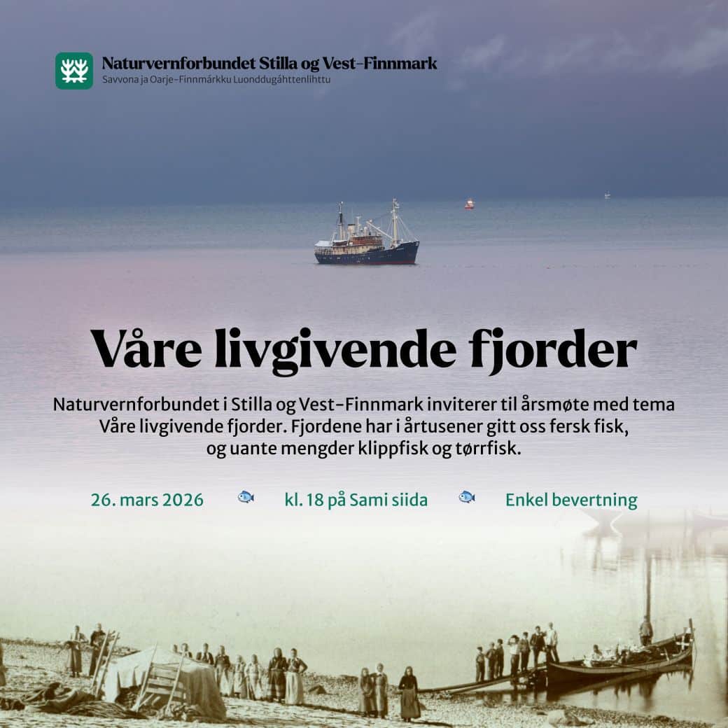 Torsdag 26. mars kl. 18 er det duket for årsmøte i Naturvernforbundet i Stilla og Vest-Finnmark på Sami Siida i Alta.