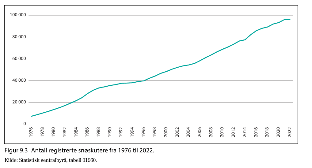 Getty Images/iStockphotoEn hovedutfordring er at frislippet med fornøyelseskjøring allerede har gått alt for langt og derfor ikke blir nedskalert, slik det burde blitt. Med over 95 000 snøskutere og omkring 10 000 km med etablerte snøskuterløyper på kryss og tvers i skog og fjell, har presset på natur og artsmangfold økt i betydelig grad.