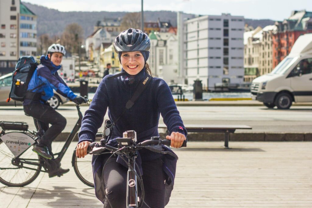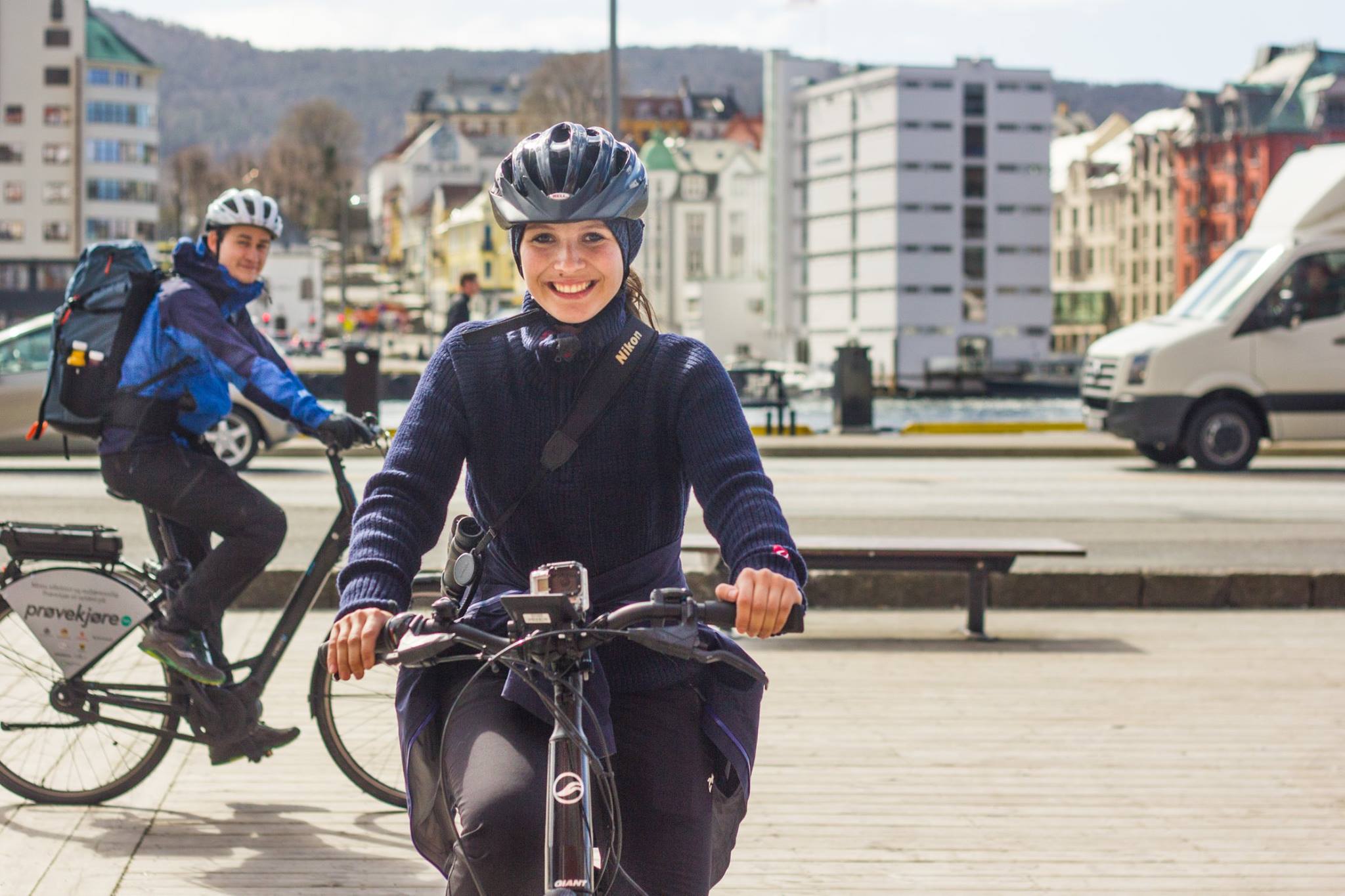 Siri Vatsø Haugum har tidligere syklet det samme stykket med vanlig sykkel, og hadde lyst til å sammenligne med elsykkel.