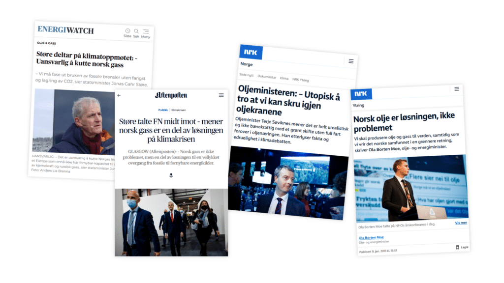 Utklipp fra mediene de siste årene, hvor politikere formidler at vi må må fortsette å bore etter olje.