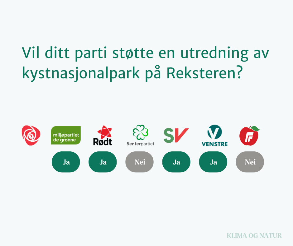 I stedet for en rådyr motorvei, foreslår vi heller å la området bli en kystnasjonalpark! Det er regnskog på Reksteren, en naturtype vi har ansvar for å ta vare på. La oss sammen ta vare på den unike naturen vi har!