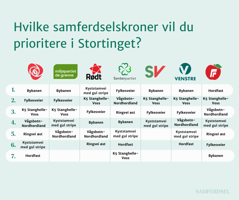 Hvilke samferdselsprosjekter prioriteres?