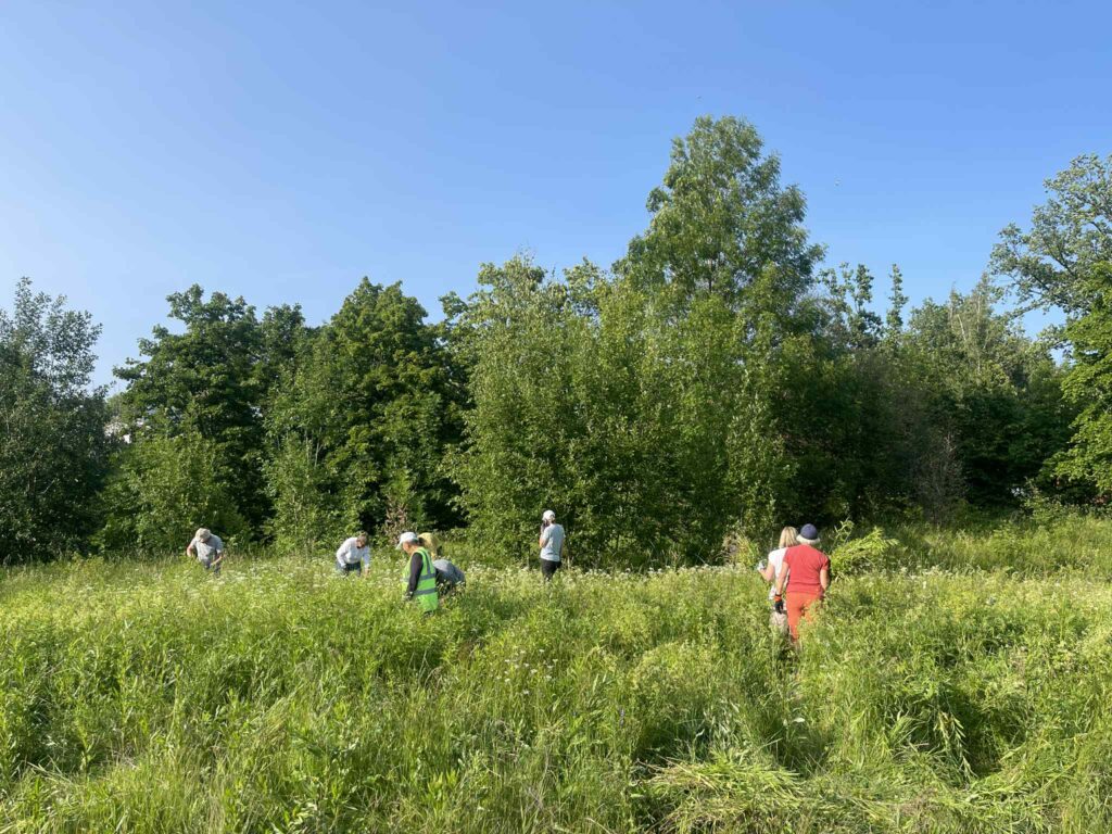 På oppdrag fra kommunen stilte en dugnadsgjeng opp for å fjerne kanadagullris på et grøntområde på Oksenøya.