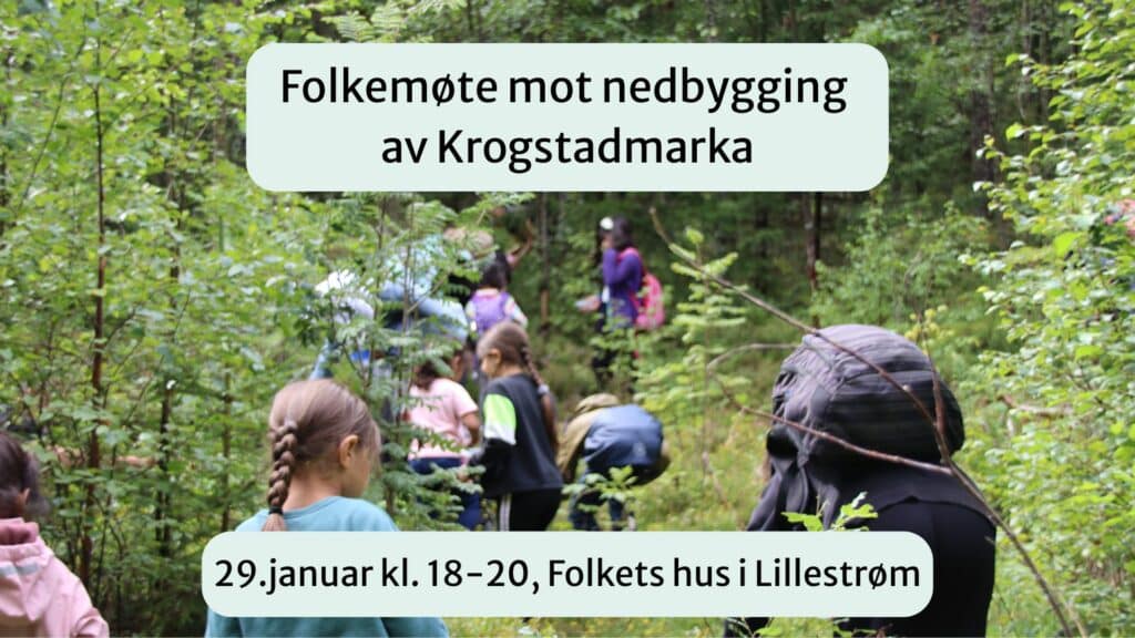 Bli med på folkemøte mot nedbygging av Krogstadmarka torsdag 29. januar kl. 18.00 i Folkets hus i Lillestrøm. La oss vise at vi er mange som ønsker å bevare Krogstadmarka!