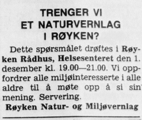 På slutten av 1980-tallet fantes det ikke lenger noe lokallag av Naturvernforbundet i Røyken, men et lokallag av Natur og ungdom ble stifta høsten 1988. Hovedflyplassaken førte også til engasjement blant de unge. Aktiviteten i lokallaget opphørte i 1992.