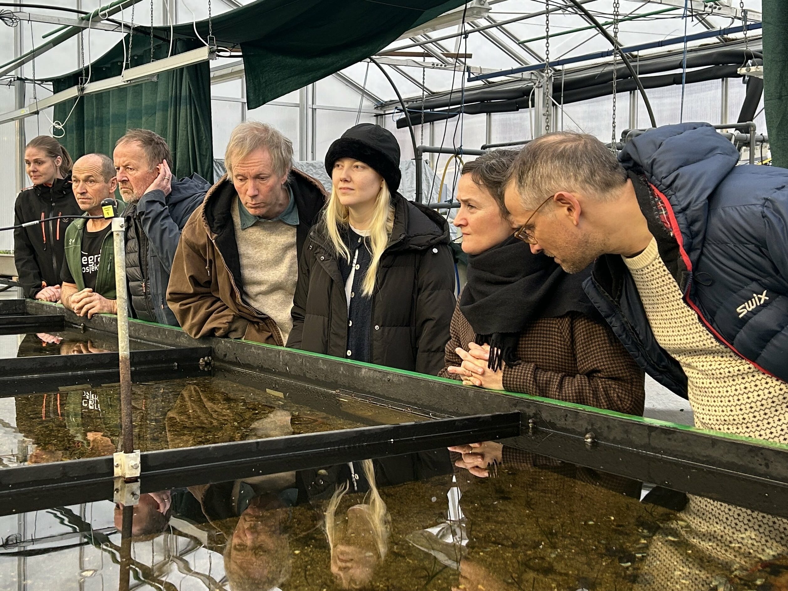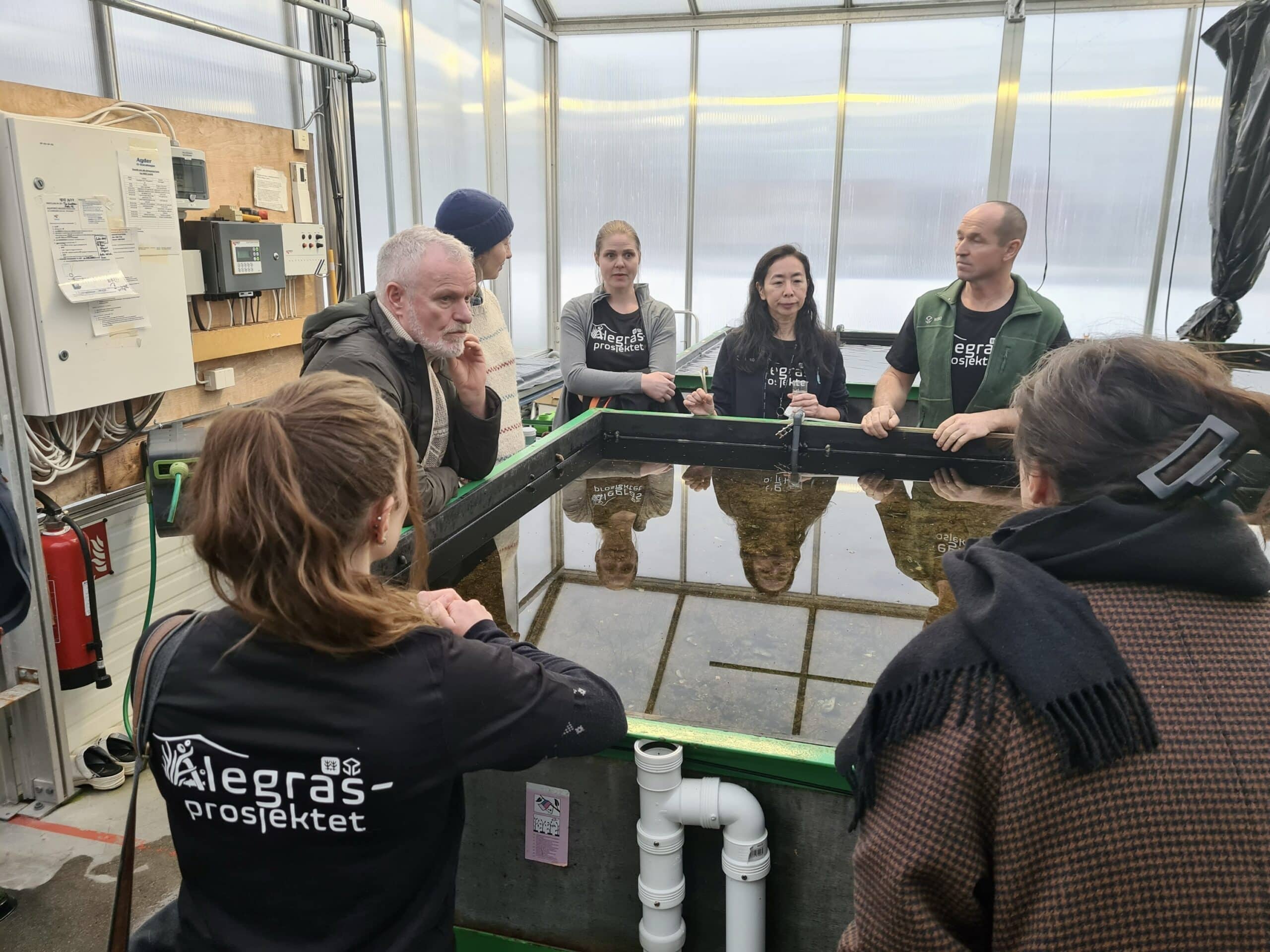 Martine StaveDeretter gikk turen ut til akvaponianlegget på Landvik der oppformeringen av ålegras er i full sving – for trolig aller første gang i Norge! Siden i sommer har de testet ut ulike metoder for å få til innendørs oppformering av ålegrasplanter, der målet er å kunne høste frø eller stiklinger som vi kan bruke i restaureringsarbeidet vårt. Ikumi Umetani, Iris Eik og Atle Beisland fra NIBIO er ansvarlige for arbeidet, og de har gjort en skikkelig innsats! I to store kar vokser det nå ålegras i ulike vekststadier, og det har til og med blitt høstet frø fra plantene. På sikt håper de på å utvide ålegrasanlegget med flere kar utendørs.