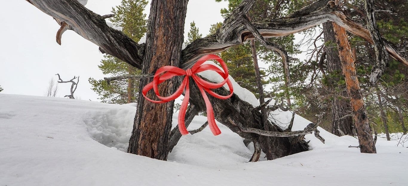 Symbolsk julegavekort med bilde fra Pasvik (Død mini-krokfuru,