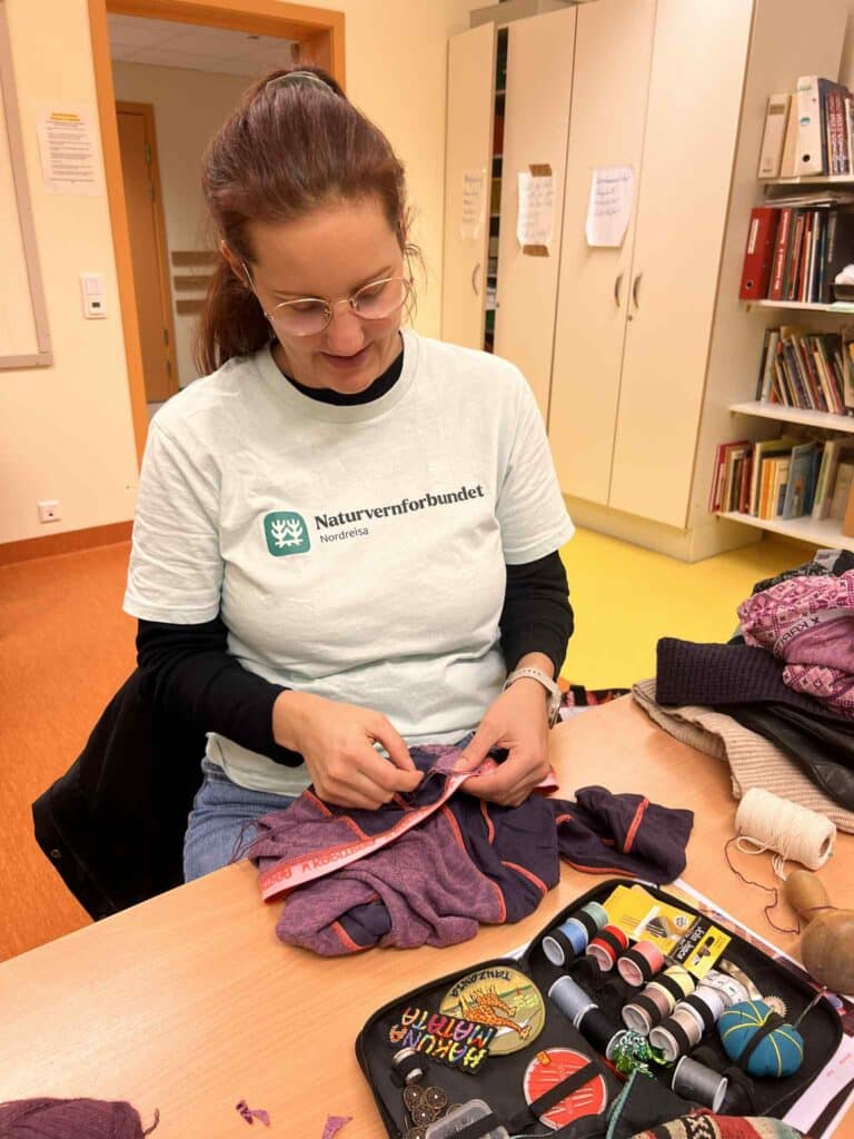 Ann startet kvelden med å vise fram ulike teknikker for å reparere klær, før deltakerne gikk løs på egne plagg med god veiledning underveis. Stemninga var topp med julesnacks og gløgg, og praten gikk like lett som symaskinene.