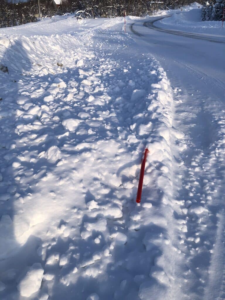 Over 10 km på FV860 er blitt kraftig forsøplet med ødelagte brøytestikker av plast og rester av ødelagte brøytestikker av plast