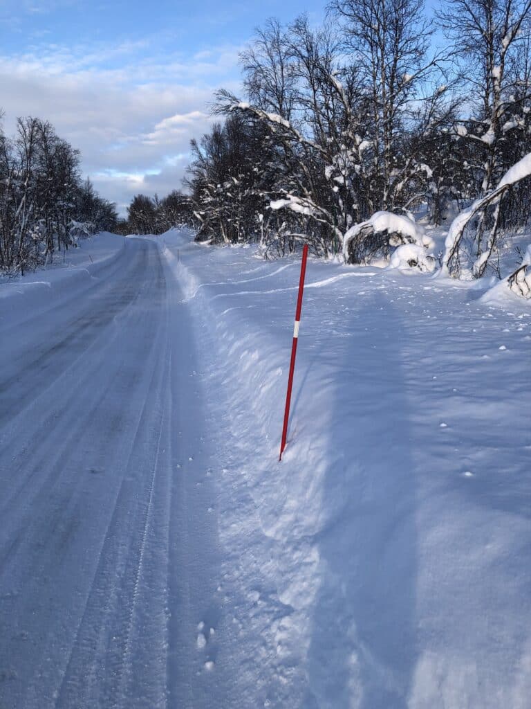 Etter det vi erfarer, har entreprenøren Veidekke AS som utfører vintervedlikehold for Troms Fylkeskommune, bruk hjullaster som bruker skjær og fres til å «berme ned» for å minke høyden til snøbermene på siden av Fylkesvei 860 mellom Solli og Øverbotn. Dette er arbeid som i tidligere ble utført med veihøvel. Selv om det er begrenset mengde snø i år, har de bermet veldig langt ned. Helt ned til 10-20 cm. Dersom de hadde fjernet de gamle plastveistikkene først, ville dette ikke nødvendigvis ha vært et stort problem, og sikkert positivt for trafikksikkerheten. Etter det vi kunne observere, var ikke de røde veistikkene av plast fjernet før de bermet ned. Dette har ført til at flere hundre gamle røde plastveistikker, og rester av ødelagte veistikker, ligger spredt langs veikantene og i naturen i nærheten av veien.