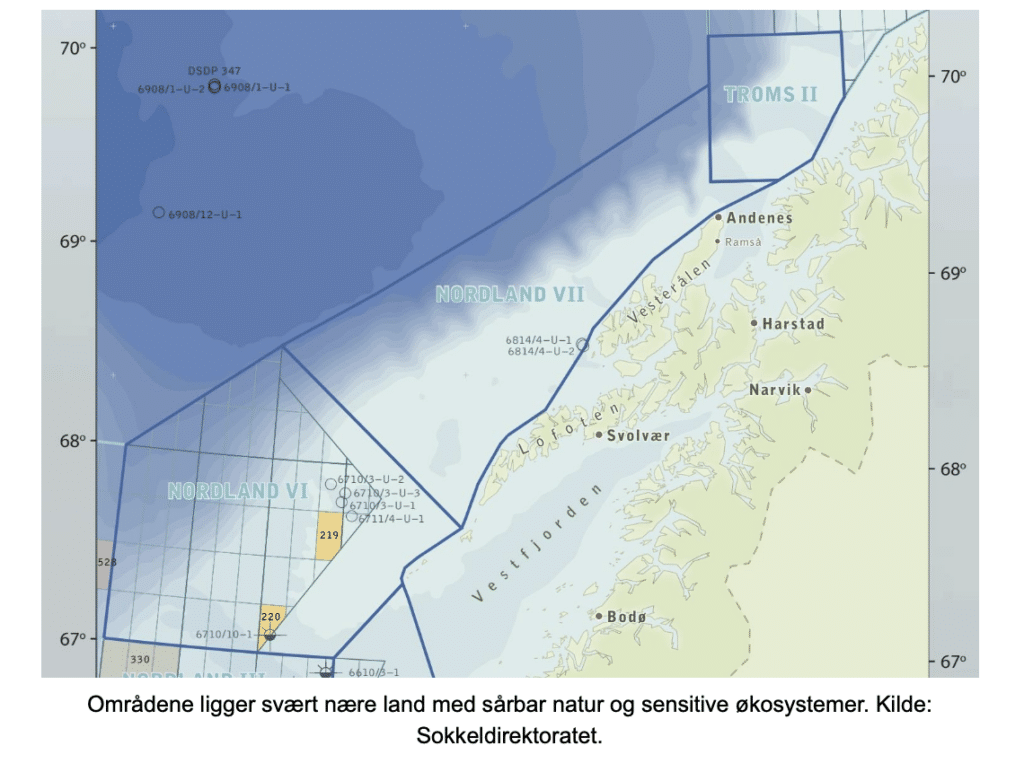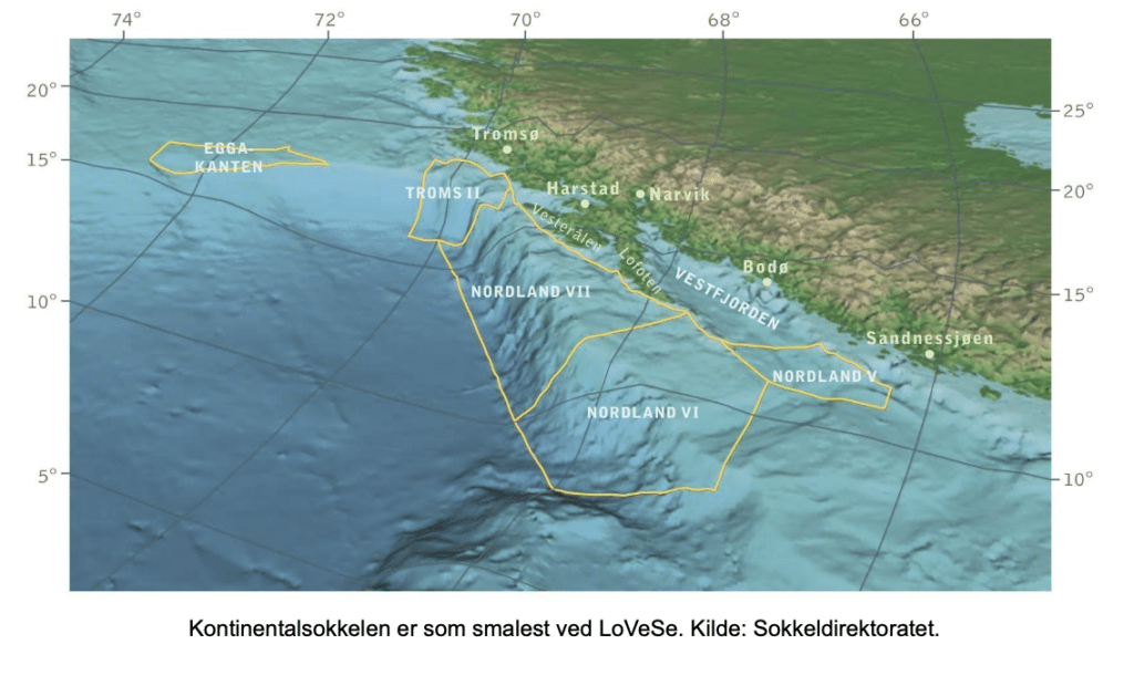 Kontinentalsokkelen er adskillig smalere i LoVeSe enn resterende deler av norskekysten. Det innebærer en betydelig risiko for arealkonflikter og negative konsekvenser for både fiskenæringen og sårbart dyre- og planteliv. Skyting av seismikk skremmer bort fisk og fortrenger fiskenæringen. Videre ligger de foreslåtte områdene nære land. I kombinasjon med blant annet sterke strømmer og en utfordrende geologi gjør det oljeberedskapen spesielt utfordrende i LoVeSe.