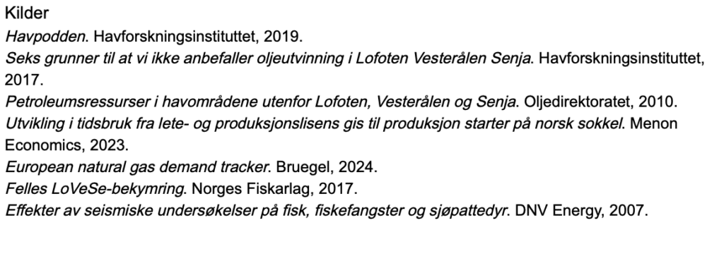 Den gjennomsnittlige tiden det tar fra lete- og utvinningstillatelse gis til produksjonen starter er 19,7 år for norsk sokkel. Dessuten estimerer Sokkeldirektoratet at det bare er 32% gass blant ressursene i områdene utenfor Lofoten, Vesterålen og Senja. Med andre ord vil ikke en åpning av våre aller mest sårbare fiskeriområder bidra til en betydelig økt gasseksport til EU.