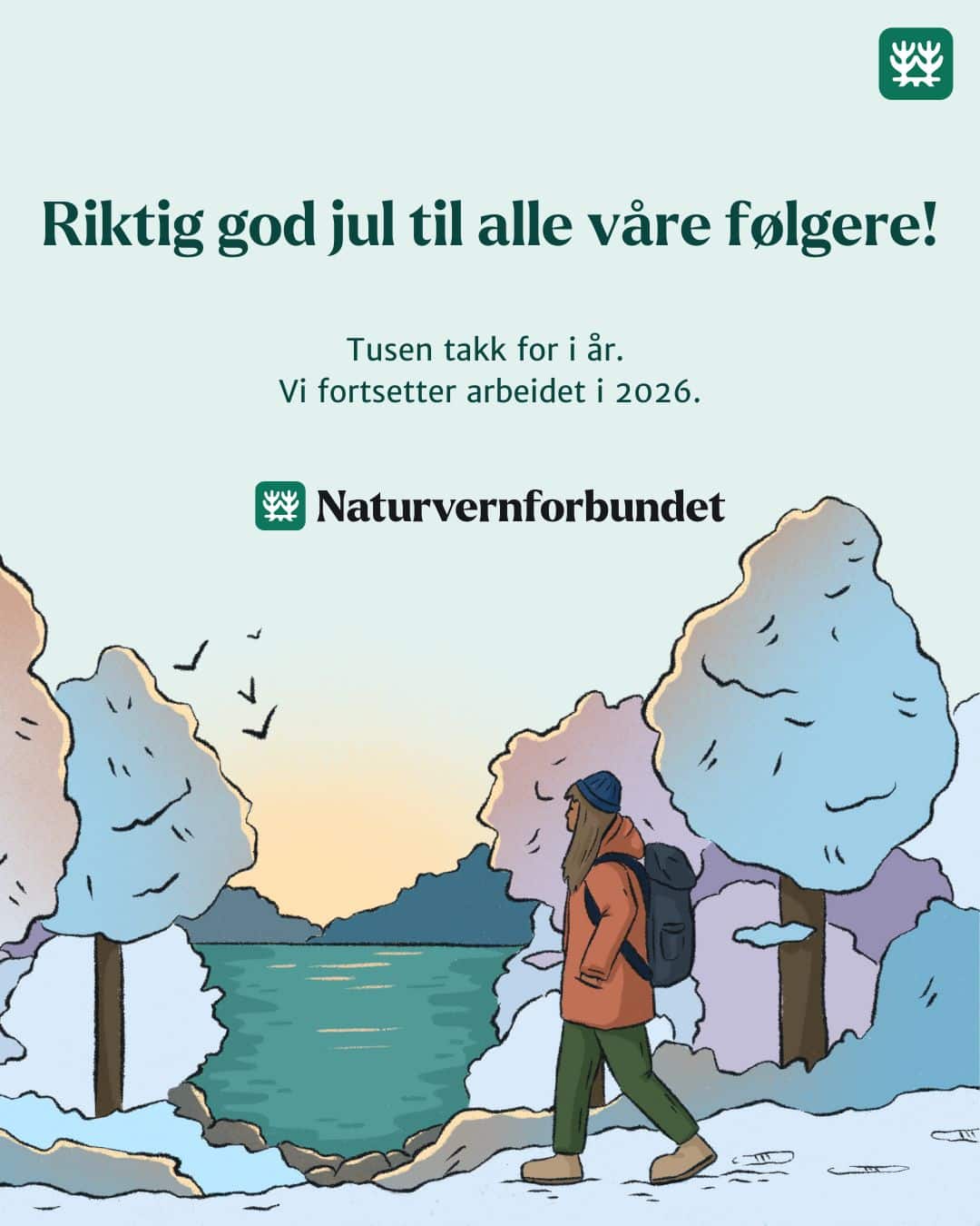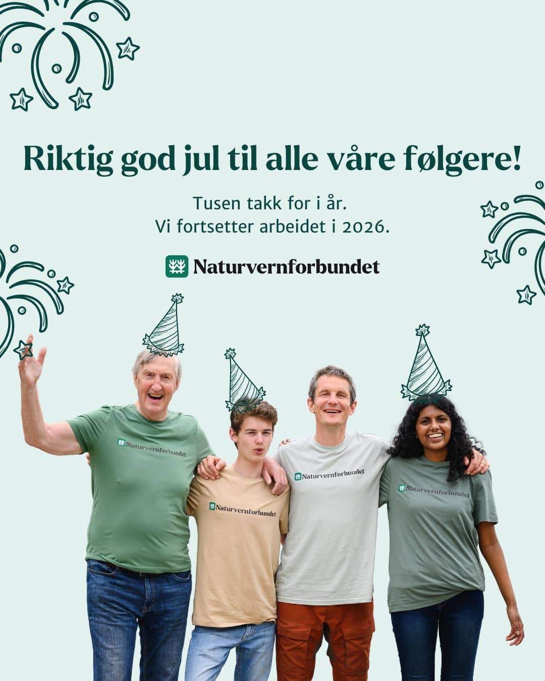 - Takk for at du heier på naturen sammen med oss. Med støtte fra medlemmene har vi i år fått til [kort eksempel], og i 2026 håper vi å få til enda mer. Bli medlem og stå sammen for naturen: naturvernforbundet.no/bli-medlem 💚